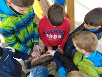 Unter fachkundiger Führung von Frau Hegewald - Mitglied im Kulturverein Frauenstein e.V. IG Bergbau - wanderten wir auf dem Lehrpfad "Silberpfad" zu der Station Friedrich August Erbstolln. Dort lernten wir was Hunt, Göpel und Haspel sind. Wir testen eine Wünschelrute, bestimmten Minerale, sahen Modelle von bergbaulichen Anlagen. Etwas Zeit blieb denoch für die Trickfilme in der warmen Werkstadt in der Schule Frauenstein.